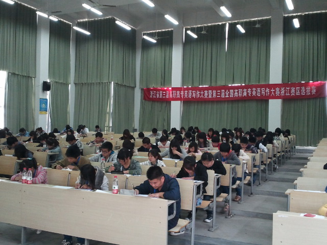 4月6日下午,浙江省第三屆高職高專英語寫作大賽暨第三屆全國高職高專英語寫作大賽浙江賽區(qū)選拔賽在我院舉行,來自全省46所高職高專院校的123位選手參加了比賽,其中公共英語組89人,專業(yè)英語組34人。經(jīng)過兩小時的沉著應(yīng)戰(zhàn),寫作大賽圓滿結(jié)束。本次賽事參賽院校與人數(shù)均創(chuàng)歷史新高,這也是我院首次承辦該類賽事。