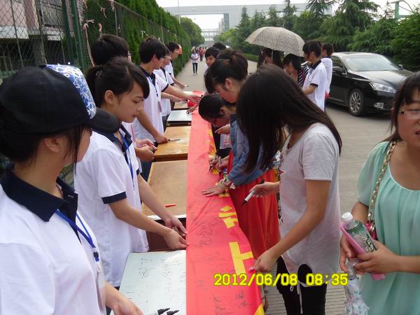 當綠草又一次鋪滿校園,當夏氣又一次漸漸浮起,微風里開始飄散著離別的味道,大三的同學將帶著眷戀與不舍、希望與憧憬,告別那些屬于月光、歡笑、淚水和友情的日日夜夜,背起行囊走上新的征途。為響應(yīng)學校關(guān)于文明離校的號召,2012年6月8日上午,機電與汽車分院團總支發(fā)起“光榮畢業(yè)文明離?!钡?012屆畢業(yè)生文明離校承諾簽字活動,并發(fā)放600多份倡議書。