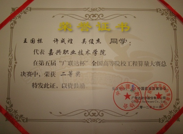 11月25日上午,全國大學(xué)生第三屆“廣聯(lián)達(dá)杯”工程項目管理沙盤模擬大賽在廈門集美大學(xué)圓滿落下帷幕,由陳學(xué)麗、阮雪琴老師帶領(lǐng)的工程103班5名學(xué)生,代表學(xué)院首次組隊參加此項比賽。經(jīng)過集體努力,最終榮獲了團(tuán)體三等獎的好成績。本次大賽以團(tuán)隊合作的方式培養(yǎng)學(xué)生的專業(yè)技能應(yīng)用能力和綜合協(xié)調(diào)能力,這對推動專業(yè)教學(xué)改革,豐富學(xué)生的經(jīng)驗有積極促進(jìn)作用。大賽為各高校之間搭建起很好的交流和學(xué)習(xí)平臺,也為我校創(chuàng)造了向兄弟院校學(xué)習(xí)和院校之間交流與合作的機(jī)會。