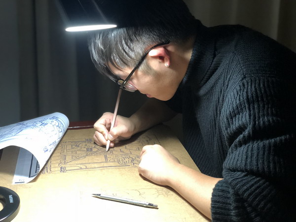 前來參加培訓(xùn)班的平湖學(xué)員張?zhí)靷惍厴I(yè)于廈門大學(xué)嘉庚學(xué)院,學(xué)平面設(shè)計的他對傳統(tǒng)非遺文化十分感興趣,自己還曾在桐鄉(xiāng)藍印花布廠實習(xí)過2個月,喜歡文創(chuàng)產(chǎn)品的他平時喜歡自刻自畫自染,他說來到培訓(xùn)班學(xué)習(xí),不僅能夠?qū)W到更多的前沿理論知識,而且能親自動手去做,因此能夠?qū)鹘y(tǒng)手工藝品進行傳承,再融入時尚元素進行創(chuàng)新。