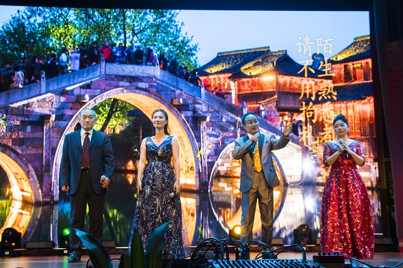 一曲《歌聲飄過四十年》,多個(gè)經(jīng)典老歌重現(xiàn)的片段,歲月變遷,勾起教師們的無數(shù)回憶。一首改編而成的《南湖歡迎您》,道出嘉興南湖的悠久文化,唱出南湖人的熱情好客。