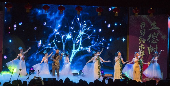 整場晚會分為“改革開放,薪火相傳”、“弦歌不綴,再創(chuàng)輝煌”兩個(gè)篇章。