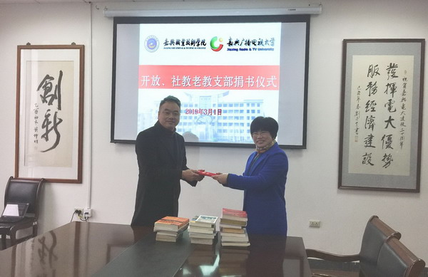 3月1日下午,在我校大新路校區(qū)415會議室,機(jī)關(guān)第二黨總支開放教育學(xué)院社區(qū)老年教育學(xué)院黨支部舉行捐贈圖書儀式,在支部書記張創(chuàng)偉的帶領(lǐng)下,支部將24冊飽含濃濃書香情意的圖書捐贈給了圖書館。捐贈儀式上,學(xué)校圖書館授予黨支部捐贈證書,圖書館副館長張君斐代表圖書館向黨支部各位黨員表達(dá)了感謝。捐贈儀式結(jié)束后,大家就學(xué)校圖書文獻(xiàn)資源建設(shè)進(jìn)行了座談。