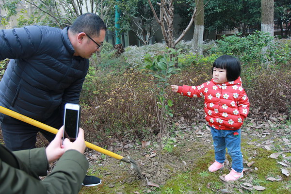 參加本次活動(dòng)的人員有大學(xué)生志愿者、指導(dǎo)老師、小區(qū)物業(yè)工作人員、小區(qū) 11戶親子家庭。上午9時(shí)活動(dòng)開始,指導(dǎo)老師首先向小朋友和家長們講解了植樹的要領(lǐng)和注意事項(xiàng)。講解過后小朋友和家長共同協(xié)作,一起拿起事先由志愿者準(zhǔn)備好的材料,開始分頭在物業(yè)指定的位置上,紛紛開始在小區(qū)里種植25株桂花、山茶花。