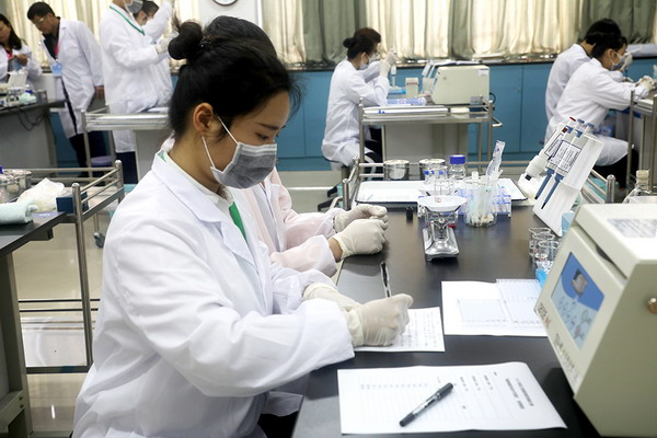 來自金華職業(yè)技術(shù)學(xué)院、溫州科技職業(yè)學(xué)院的9組選手共計(jì)18名同學(xué)參加本次大賽。競賽過程包括試驗(yàn)器材準(zhǔn)備、配制1%雞紅細(xì)胞懸液、血凝試驗(yàn)、配制四單位病毒、血凝抑制試驗(yàn)和抗體滴度報(bào)告六個(gè)部分,需要在180分鐘內(nèi)完成比賽。我校學(xué)子在賽場上沉著應(yīng)對、激烈比拼,取得了優(yōu)異的成績。本次大賽共評出一等獎(jiǎng)獲獎(jiǎng)選手2名、二等獎(jiǎng)4名、三等獎(jiǎng)6名。