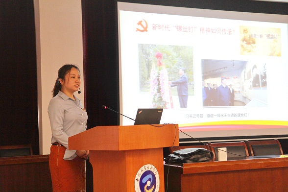 許多選手的演講內(nèi)容令人印象深刻,聽眾為之動(dòng)容。如開放教育黨支部的周宇嵐老師的《立德立言,無問西東——說說“佛系”奮斗》,將當(dāng)下流行詞語“佛系”和奮斗兩個(gè)互相矛盾的詞語結(jié)合演講,引經(jīng)據(jù)典,充滿哲理思辨性,讓人耳目一新。來自工商與旅游學(xué)院黨總支的楊璇老師以《做一顆永不生銹的螺絲釘》娓娓道來,指出我們都是社會(huì)中的一顆螺絲釘,雖然渺小但是意義不可忽視,應(yīng)當(dāng)立足崗位、矢志奉獻(xiàn)自己。