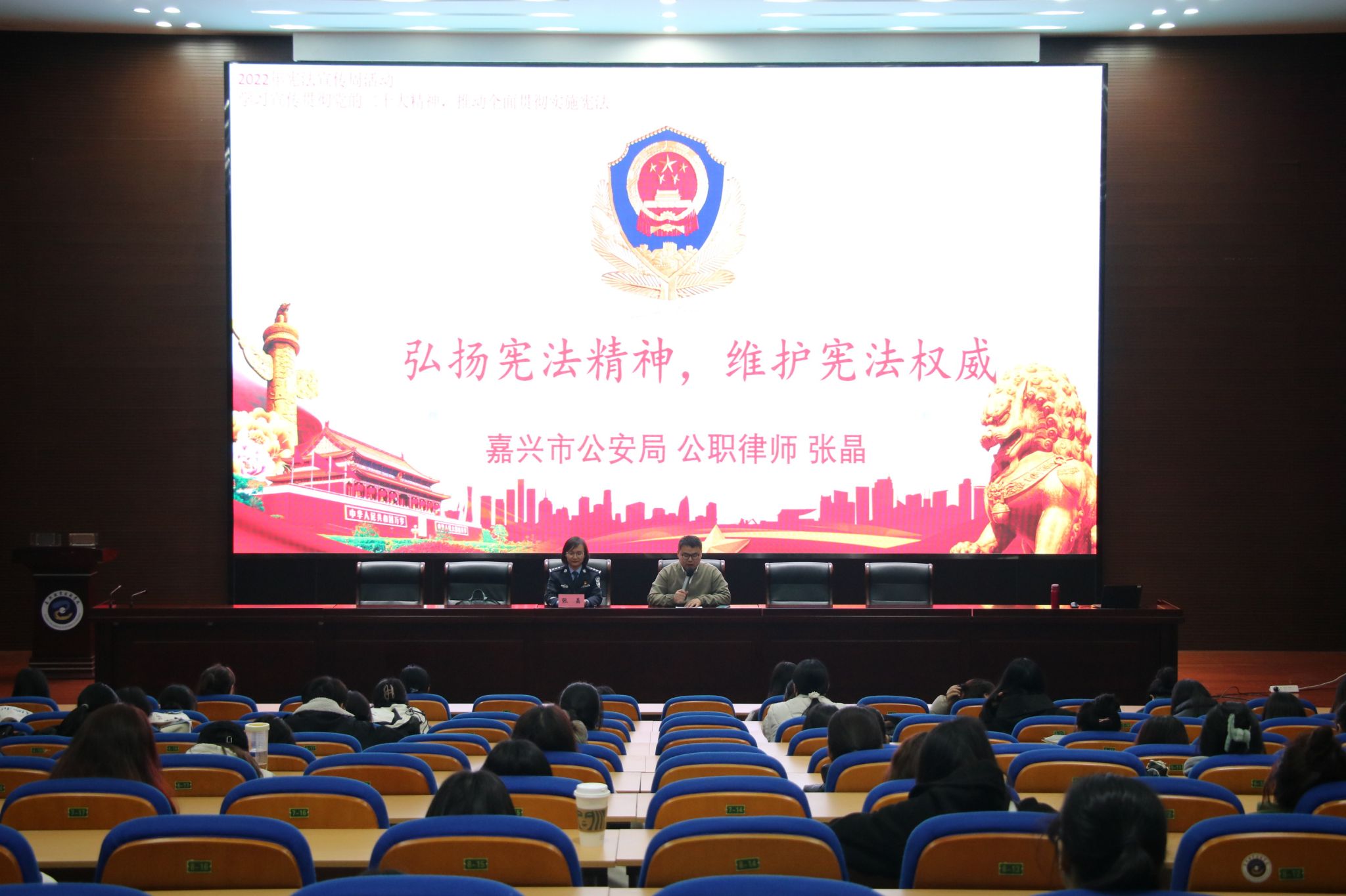 12月5日,學(xué)院邀請(qǐng)嘉興市公安局民警、公職律師張晶為同學(xué)們作普法教育講座。張晶從憲法起源、我國(guó)憲法、憲法伴我們成長(zhǎng)、二十大精神與個(gè)人成長(zhǎng)四個(gè)方面展開講座。她表示,《憲法》規(guī)定了國(guó)家的基本制度、公民的基本權(quán)利和義務(wù)等重要內(nèi)容,每一位中國(guó)公民都必須了解憲法、學(xué)習(xí)憲法,將憲法根植在心中。法治興則國(guó)興,法治強(qiáng)則國(guó)強(qiáng),唯有良法善治,才是民之所向。