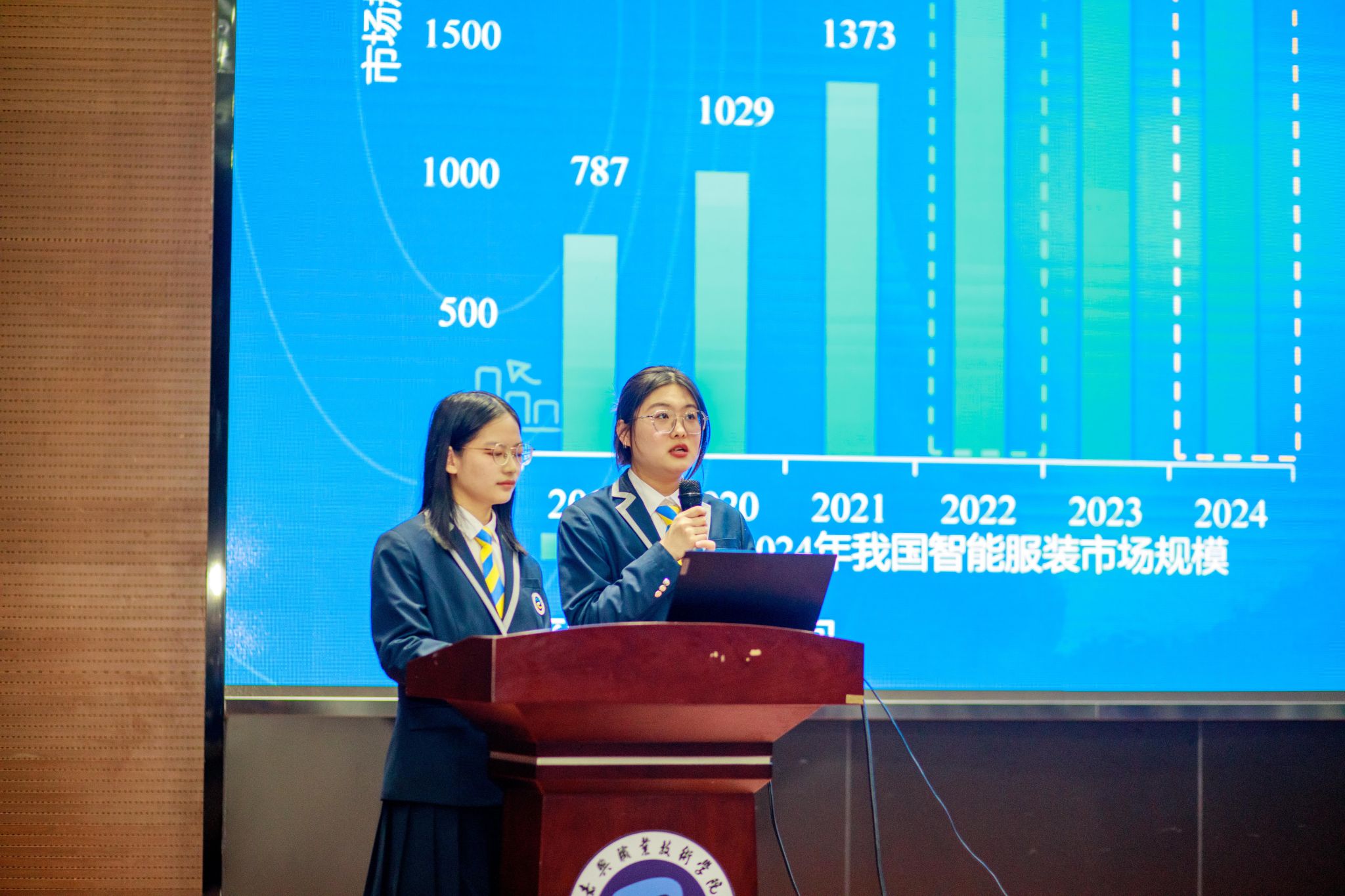 比賽現(xiàn)場,《云享衣裳 數(shù)享容——服裝行業(yè)數(shù)字化革新引領(lǐng)者》項(xiàng)目組圍繞企業(yè)試用反饋、平臺(tái)數(shù)據(jù)基礎(chǔ)、平臺(tái)功能、平臺(tái)數(shù)字樣衣案例等方面,詳細(xì)講述了服裝定制數(shù)字化平臺(tái)的特點(diǎn),充分展現(xiàn)項(xiàng)目成效?!队H膚優(yōu)選退熱“+”——變溫顯色智能型降溫貼》項(xiàng)目組從研發(fā)背景、研發(fā)內(nèi)容、產(chǎn)品介紹、價(jià)值意義等方面進(jìn)行評述與答辯,展現(xiàn)了青年學(xué)子奮發(fā)有為、積極進(jìn)取的科學(xué)態(tài)度和科學(xué)精神,為大家呈現(xiàn)了一場精彩的學(xué)術(shù)盛宴。
