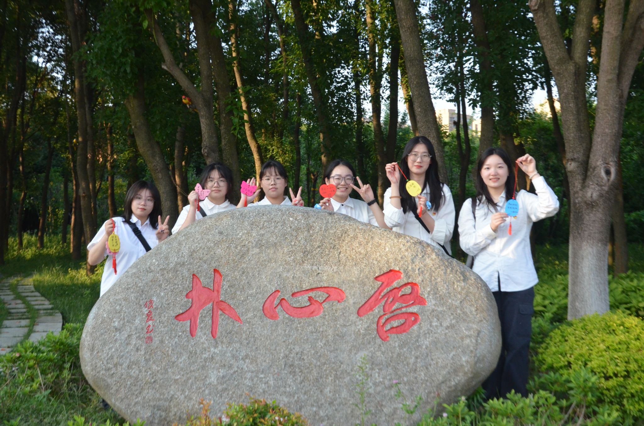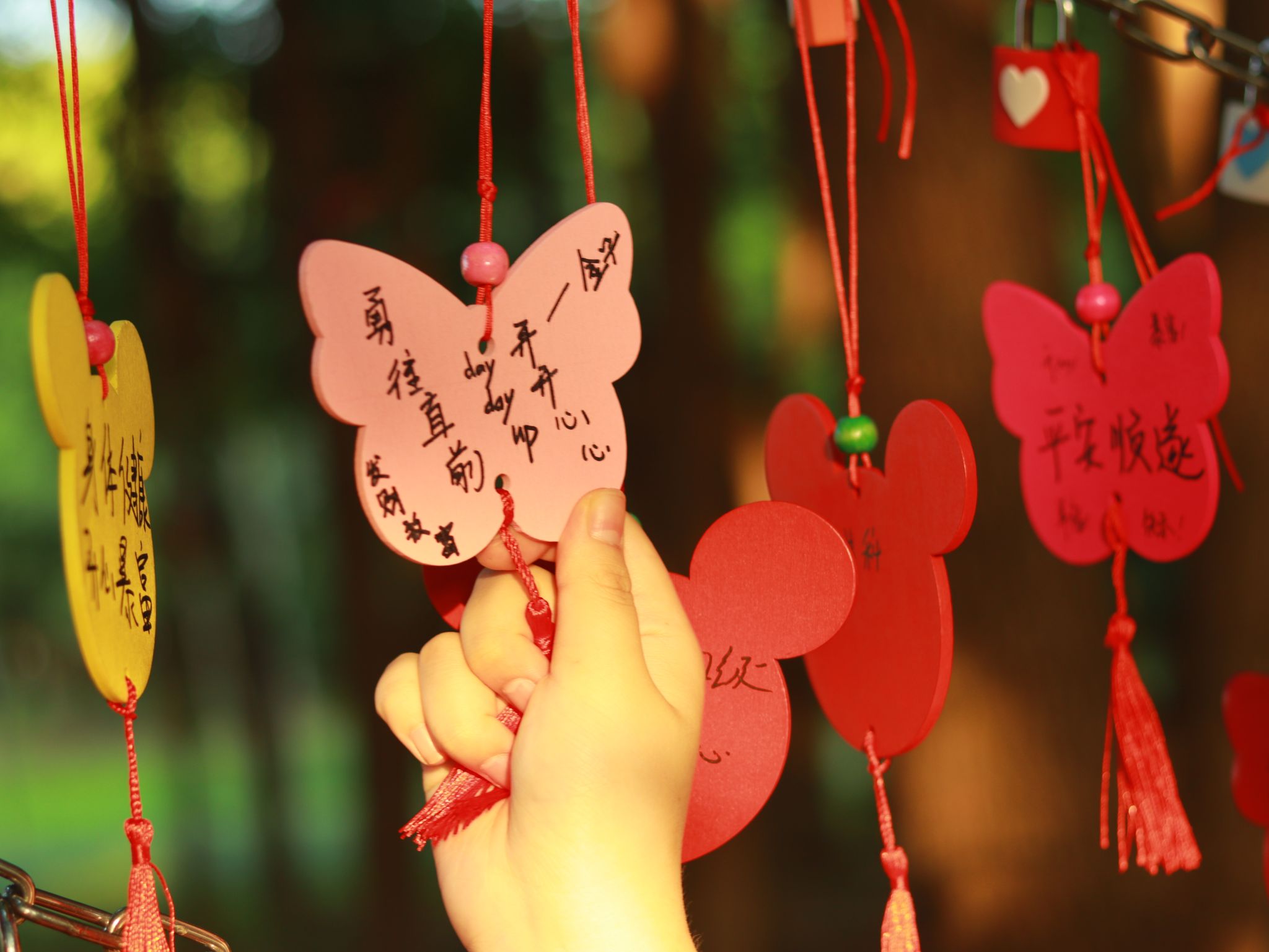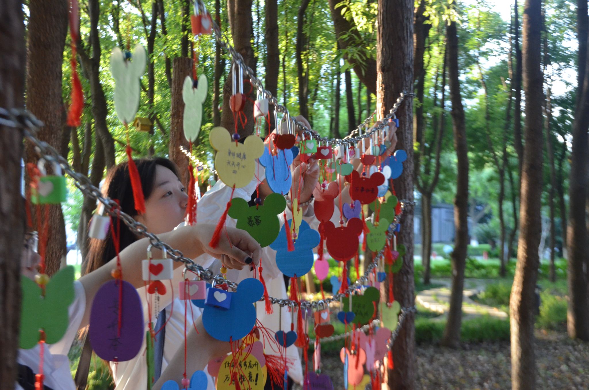 “以夢為馬,未來可期”、“躍入人海,輕裝上陣”......當(dāng)天,畢業(yè)生們來到了學(xué)校啟心林,在小木牌上寫下了對未來的期望后,將小木牌和同心鎖掛在了早已準(zhǔn)備好的懸掛區(qū)域,用最質(zhì)樸的話語表達(dá)最真實的期盼和最真摯的祝福。