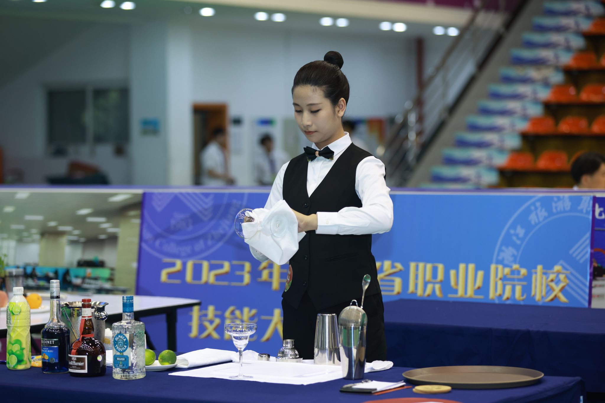 首次參賽,喜獲佳績!近日,浙江省教育廳舉辦2023年浙江省職業(yè)院校技能大賽高職組“酒水服務(wù)”賽項,來自省內(nèi)18所高職院校36支隊伍同臺競技。嘉職院文化與旅游學(xué)院學(xué)生林靜瑩、尉智昊、童曉瑩、童佳羽組成兩支隊伍參賽,經(jīng)過激烈角逐,斬獲了2個二等獎的好成績。