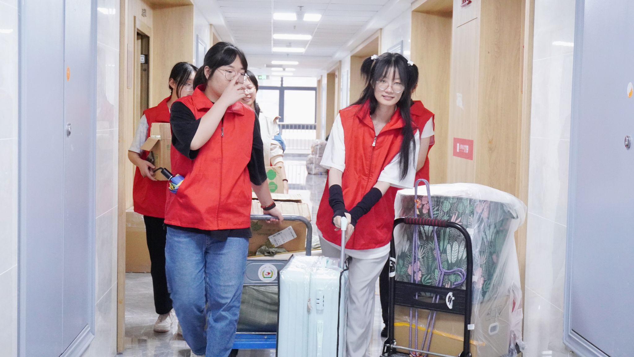 當(dāng)天,師生志愿者為不方便返校的同學(xué)提供行李打包、行李寄回等暖心服務(wù),積極熱情地幫助在校學(xué)生搬運(yùn)行李,樓上到樓下、宿舍到校門,志愿者們忙得大汗淋漓,熱情卻絲毫不減。學(xué)院還安排了送生入企崗位實(shí)習(xí)專線車,集中接送實(shí)習(xí)學(xué)生,架起傳遞學(xué)院溫情與祝福的橋梁。同學(xué)們紛紛表示,此次活動(dòng)特別暖心,他們將帶著母校的關(guān)懷砥礪前行、不懈奮斗。