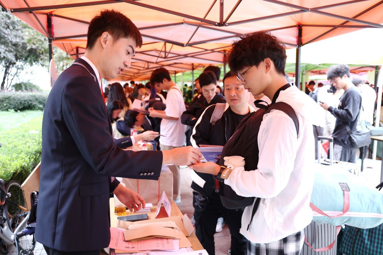 在高鐵南站,接站組的志愿者們高舉指示牌,早早地在出站口等候新生,讓他們第一時(shí)間感受到嘉職大家庭的溫暖。在報(bào)到現(xiàn)場(chǎng),學(xué)校攜手城南派出所,設(shè)立反詐宣傳點(diǎn),由專人向同學(xué)們宣講反詐防騙知識(shí)、派發(fā)宣傳資料,提高學(xué)生安全防范意識(shí)和能力。在綠色通道接待點(diǎn),志愿者向新生介紹國(guó)家和學(xué)校的資助政策體系。