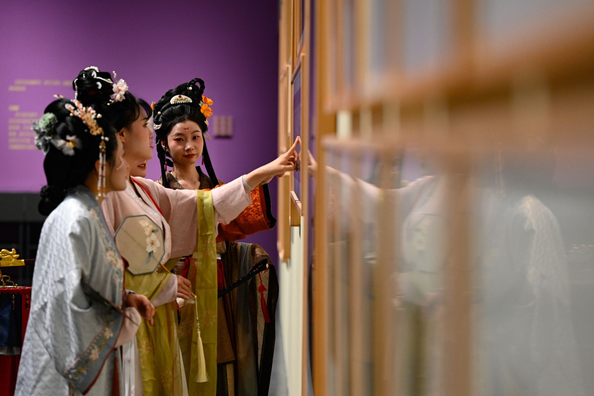 為弘揚(yáng)中華傳統(tǒng)文化,領(lǐng)略傳統(tǒng)藝術(shù)風(fēng)采,以文化人、以文育人,10月6日晚,嘉職院時(shí)尚設(shè)計(jì)學(xué)院師生共赴嘉興市文化藝術(shù)中心參觀中國(guó)歷代繪畫大系成果展嘉興特展,進(jìn)行“沉浸式”國(guó)風(fēng)體驗(yàn)活動(dòng)。