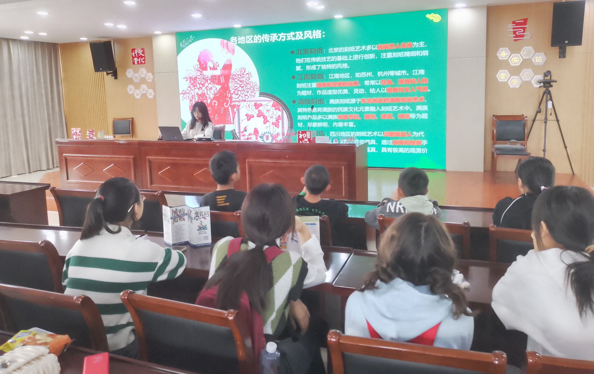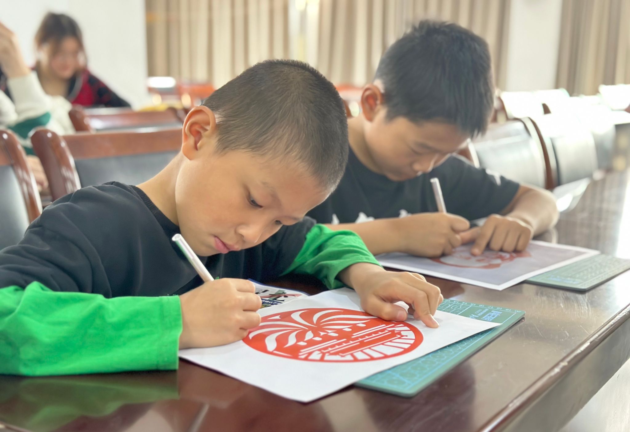 在紅色刻紙環(huán)節(jié),紅船青馬營大學生志愿者徐夢嵐從刻紙藝術(shù)的特點價值、保護措施,以及未來拓展和影響力等方面為小朋友們進行了一系列知識講解??碳埶囆g(shù)起源于民間,可追溯至漢代。刻紙藝術(shù)大體可分為北京刻紙、江南刻紙、四川刻紙等,不同地區(qū)刻紙藝術(shù)側(cè)重各異,風格眾多。隨后,小朋友們手握刻刀,在實踐中領(lǐng)略刻紙的魅力。一把刻刀,一張紅紙,刻刀在紅紙上飛舞,精美的圖案鏤空呈現(xiàn)。