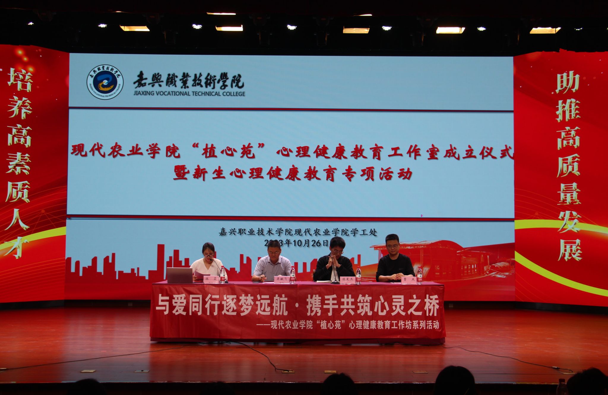 為進(jìn)一步增強(qiáng)學(xué)生心理健康防線建設(shè),打造全員全程全方位全環(huán)境立德樹人心理健康教育矩陣,幫助青少年培養(yǎng)良好的心理素質(zhì)和樂觀向上的心理品質(zhì),10月26日,嘉職院現(xiàn)代農(nóng)業(yè)學(xué)院舉辦“植心苑”心理健康教育工作室成立儀式暨新生心理健康專項(xiàng)教育,590余名師生參加本次活動(dòng)。