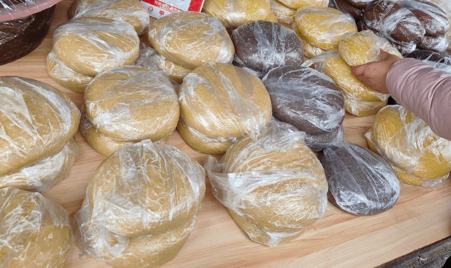 我們布依族將大年三十這一天稱為“了年”,在這一天,男女老少都要穿上盛裝,載歌載舞慶祝團(tuán)圓。過“了年”時,家家戶戶都會制作并品嘗油團(tuán)粑。油團(tuán)粑是我們布依族的特色小吃,糯軟而不粘嘴,香甜而不油膩,鮮美而不味濃,風(fēng)味獨(dú)特,備受大家喜愛。油團(tuán)粑的制作方式也不復(fù)雜,只需將冷水浸泡后的糯米舂成細(xì)面,加入黃花水、菜油、春芹攪拌均勻,再入油鍋炒至表皮金黃即可撈起食用。對我們布依族來說,在“了年”吃油團(tuán)粑表示圓滿完成舊年農(nóng)事,預(yù)兆著新的一年農(nóng)事順利開始,油團(tuán)粑做得越香、越好吃,來年的日子就會過得更甜、更舒暢。