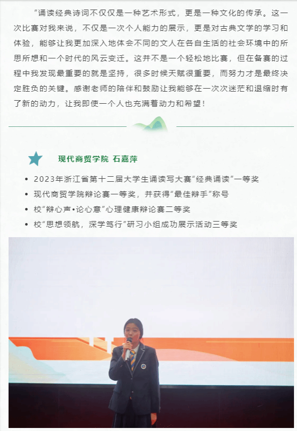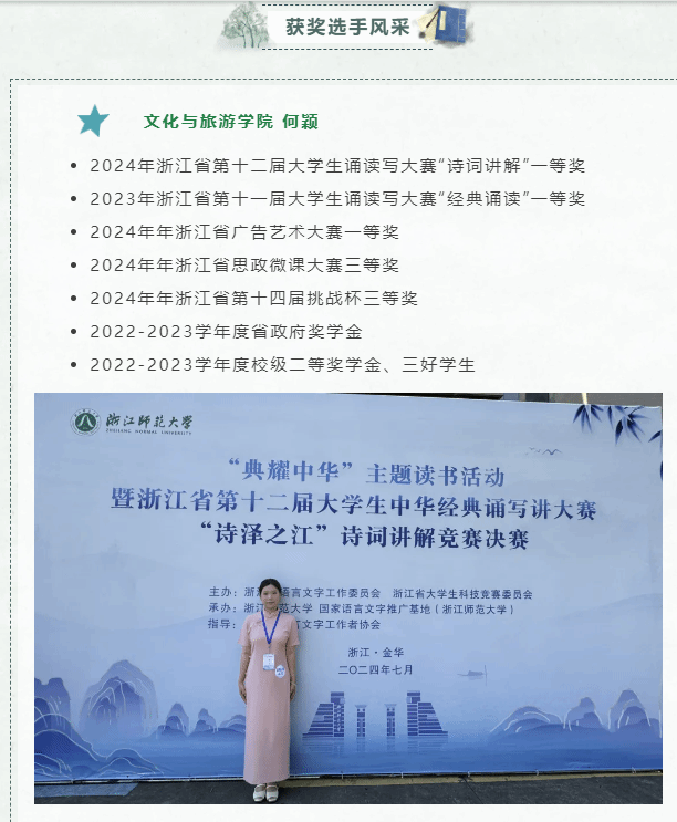 浙江省大學生中華經(jīng)典誦寫講大賽是由浙江省語言文字工作委員會、浙江省大學生科技競賽委員會主辦的省級A類語言文字學科競賽。本次大賽以““典耀中華?賡續(xù)文脈“為主題,旨在讓更多大學生在誦讀、講解、書寫經(jīng)典的過程中,領(lǐng)悟中華思想理念,傳承中華傳統(tǒng)美德,弘揚中華人文精神。