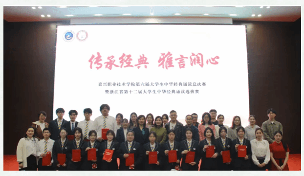 近日,浙江省第十二屆大學生中華經(jīng)典誦寫講大賽圓滿落幕。由嘉職院文化與旅游學院中文教研室指導團隊指導的何穎、石嘉萍、李彥熙等10位嘉職學子,斬獲個人組一等獎2項,二等獎1項,三等獎7項。嘉職院榮獲大賽“優(yōu)秀組織獎”。