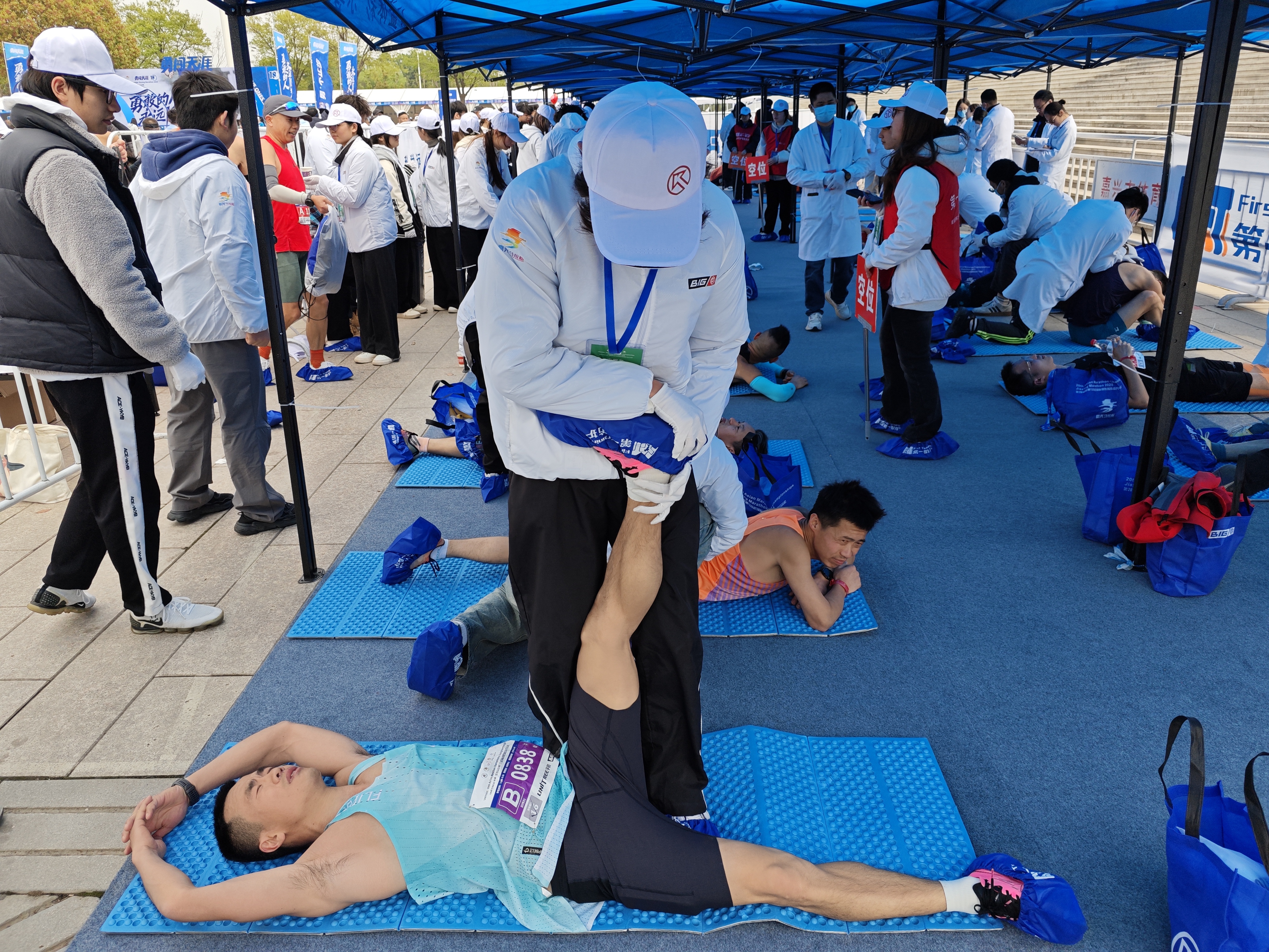 在半馬與全馬的終點,嘉職志愿者們化身“賽后守護者”,負責沖刺帶引導、飲水遞送,并為跑者提供肌肉拉伸、疲勞緩解等專業(yè)恢復服務,幫助他們快速恢復體能。此外,大家還細致維護賽道整潔,確保每位選手在干凈、安全的環(huán)境中完成挑戰(zhàn)。志愿者的貼心服務獲得選手們連連稱贊,勾勒出了一道道獨特而動人的風景線。