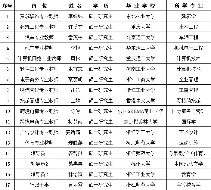 附:2017年嘉興職業(yè)技術(shù)學(xué)院公開招聘教師擬錄用人員名單