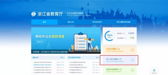進(jìn)入網(wǎng)站首頁后,點(diǎn)擊畢業(yè)生調(diào)查入口進(jìn)入入口頁面。