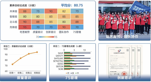 學(xué)生通過產(chǎn)業(yè)學(xué)院實戰(zhàn)崗位訓(xùn)練,創(chuàng)新意識、產(chǎn)品質(zhì)量意識、7S管理意識、團隊協(xié)作和精益求精的精神等職業(yè)素養(yǎng)得到了較大提升,素養(yǎng)達(dá)成度平均分80.75分,獲得國家專利3項。在任課教師的帶領(lǐng)下,錢寒冬、陳琳等18名同學(xué)參與企業(yè)“助企紓困”志愿服務(wù)行動,崗位能力和職業(yè)素養(yǎng)得到企業(yè)的高度認(rèn)可,北斗精神充分彰顯。