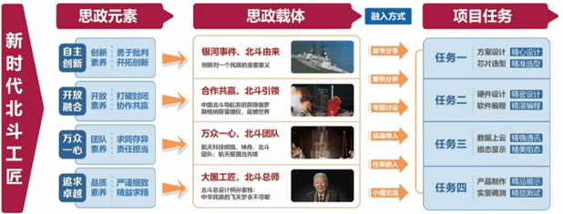 運用故事分享、案例分析、工匠講堂等手段,將“北斗精神”思政元素浸潤課堂;把素養(yǎng)養(yǎng)成內(nèi)化于技能操作中,達(dá)到知行合一,實現(xiàn)北斗精神傳承與工匠技藝傳授同頻共振、同向同行,形成課程思政育人新路徑。