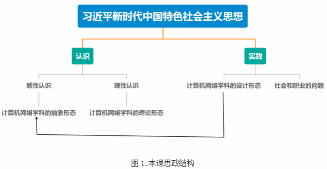 圖1所示的思政結(jié)構(gòu)是本課程案例的底層結(jié)構(gòu),旨在將習(xí)近平新時(shí)代中國(guó)特色社會(huì)主義思想融入計(jì)算機(jī)網(wǎng)絡(luò)學(xué)科的不同形態(tài)(包括設(shè)計(jì)形態(tài)、抽象形態(tài)、理論形態(tài))以及社會(huì)和職業(yè)問題的探討中。通過對(duì)思政理論的認(rèn)識(shí)與實(shí)踐,引導(dǎo)學(xué)生從感性認(rèn)識(shí)上升到理性認(rèn)識(shí),使其在專業(yè)學(xué)習(xí)過程中深入理解思政主題,培養(yǎng)正確的價(jià)值觀和職業(yè)道德。