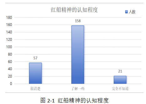 針對(duì)紅船精神的認(rèn)知程度這個(gè)維度分析,很清楚紅船精神有57人占比24.1%,了解一些紅船精神有158人占比66.9%,完全不知道紅船精神有21人占比9%。調(diào)查結(jié)果顯示,大部分大學(xué)生對(duì)紅船精神有一定的了解,但仍有近十分之一的學(xué)生對(duì)此一無(wú)所知。如圖2-1所示。