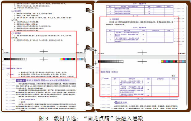 篇首明確三維目標(biāo),闡明“紅船精神、數(shù)字化創(chuàng)新與發(fā)展意識(shí)、信息意識(shí)、審美素養(yǎng)、計(jì)算思維”等六個(gè)方面的素質(zhì)目標(biāo)。任務(wù)考核環(huán)節(jié)設(shè)計(jì)素質(zhì)測(cè)評(píng)表,引導(dǎo)學(xué)生結(jié)合課堂實(shí)踐思考素質(zhì)目標(biāo)的具體內(nèi)涵和實(shí)踐意義,幫助學(xué)生將抽象的概念表達(dá)落腳到課堂實(shí)踐。圖3是教材模塊三部分節(jié)選。