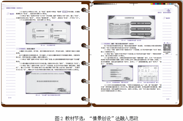 通過展示“紅船精神的由來”“紅船精神的內(nèi)涵”“踐行紅船精神”等幻燈片的制作過程,幫助學(xué)生掌握幻燈片制作的基本思路和方法,引導(dǎo)學(xué)生完成對(duì)“紅船精神”的內(nèi)容表達(dá)和意義闡述,啟發(fā)學(xué)生完成“紅船精神”與個(gè)體經(jīng)驗(yàn)的連接,形成對(duì)個(gè)人世界觀、人生觀和價(jià)值觀的一系列追問和思考,以踐行“紅船精神”的顯性表達(dá)激勵(lì)廣大學(xué)生與民族同命運(yùn)、與祖國共奮進(jìn)、與時(shí)代齊發(fā)展。圖2是教材模塊三部分節(jié)選。