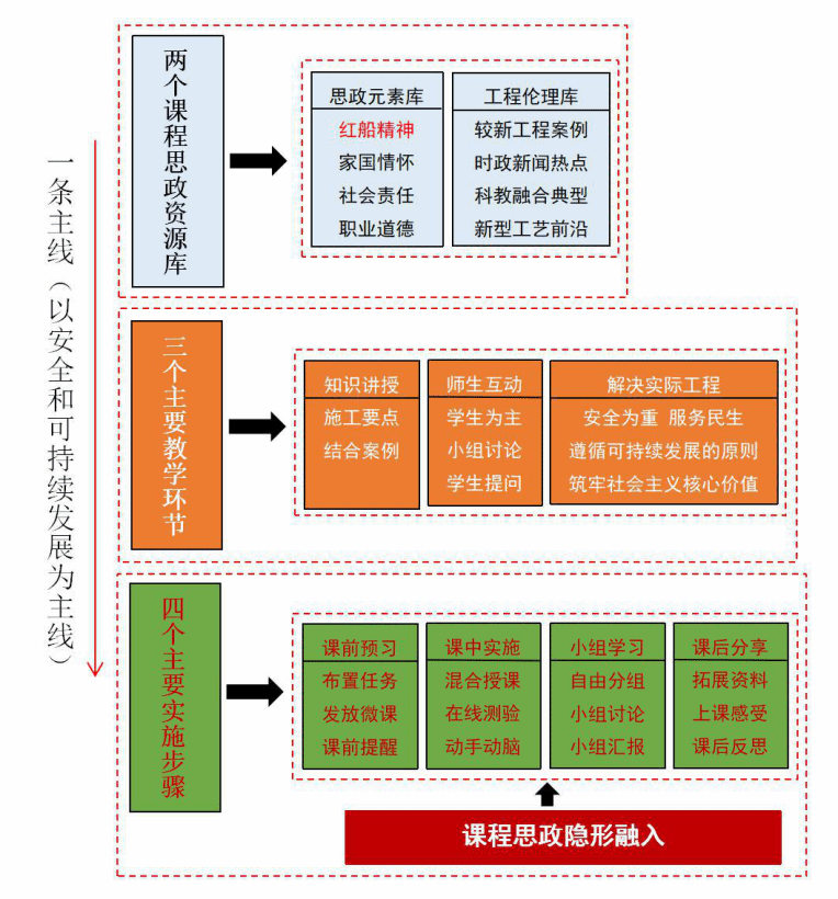 隨著建筑行業(yè)不斷創(chuàng)新與變革,《施工組織設(shè)計(jì)》作為建筑專(zhuān)業(yè)課程體系實(shí)施課程思政的先行課程也需與時(shí)俱進(jìn),以期更好地為建筑行業(yè)培養(yǎng)后備人才。從專(zhuān)業(yè)知識(shí)角度、愛(ài)國(guó)主義、紅船精神、職業(yè)素養(yǎng)等各方面提高學(xué)生的素質(zhì)。