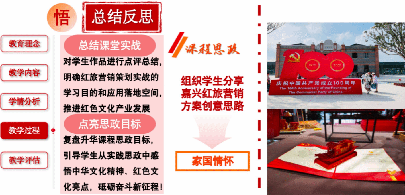 對作品點評總結(jié),明確紅旅營銷策劃實戰(zhàn)的終極目標(biāo)和應(yīng)用空間;升華思政目標(biāo),引導(dǎo)學(xué)生從實踐思政中感悟紅色文化亮點,砥礪奮斗新征程,涵養(yǎng)廣闊的家國情懷。