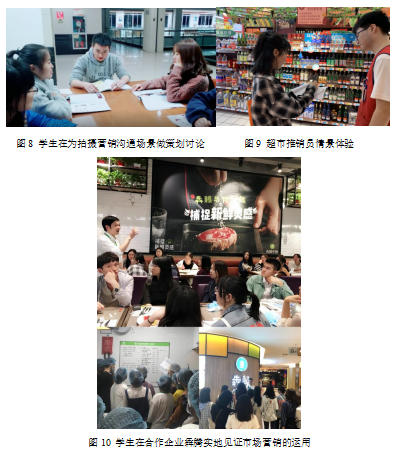 課外實(shí)踐體驗(yàn):在本課程中學(xué)生也會(huì)有較多課外實(shí)踐機(jī)會(huì)加強(qiáng)學(xué)習(xí)效果,激發(fā)團(tuán)隊(duì)協(xié)作與創(chuàng)新潛能。例如學(xué)生會(huì)利用教室外的各種地方進(jìn)行實(shí)訓(xùn)設(shè)計(jì)和實(shí)景拍攝(圖7-9),或者通過專業(yè)安排,與企業(yè)對(duì)接需求,聽企業(yè)導(dǎo)師“上一堂課”(圖10),在企業(yè)身臨其境感受市場營銷在企業(yè)運(yùn)營的各個(gè)環(huán)節(jié)中的重要作用。