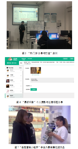 情景項(xiàng)目實(shí)操:市場營銷的每個(gè)教學(xué)模塊都會(huì)設(shè)計(jì)小組或個(gè)人實(shí)訓(xùn)項(xiàng)目,例如“新媒體營銷”章節(jié)中設(shè)計(jì)“熱門IP分享與打造”實(shí)訓(xùn)、“嘉職印象”攝影與創(chuàng)意標(biāo)題大賽,“市場環(huán)境分析”章節(jié)中“五力模型”和“SWOT分析”里分別設(shè)計(jì)“競爭力對(duì)抗分析”實(shí)訓(xùn)、“中國非遺傳統(tǒng)文化”環(huán)境分析,“STP”章節(jié)中設(shè)計(jì)“中國本土服裝品牌”STP分析、“天貓高校名人堂”大案例分析,“4P營銷戰(zhàn)略與策劃”中設(shè)計(jì)“品牌星(新)推官”為品牌打造新產(chǎn)品定位、新包裝和新推廣策略,“營銷溝通”中通過實(shí)景視頻拍攝設(shè)計(jì)“誰是營銷小能手”實(shí)訓(xùn),最后是商業(yè)計(jì)劃書個(gè)人調(diào)研大作業(yè)和小組經(jīng)濟(jì)案例作品二次修改作業(yè)收尾。每個(gè)章節(jié)實(shí)訓(xùn)項(xiàng)目設(shè)計(jì)充分展示了市場營銷課程對(duì)“首創(chuàng)精神”的感悟和實(shí)踐,體現(xiàn)了管理類學(xué)生對(duì)“敢為人先,勇立潮頭”堅(jiān)定信念。