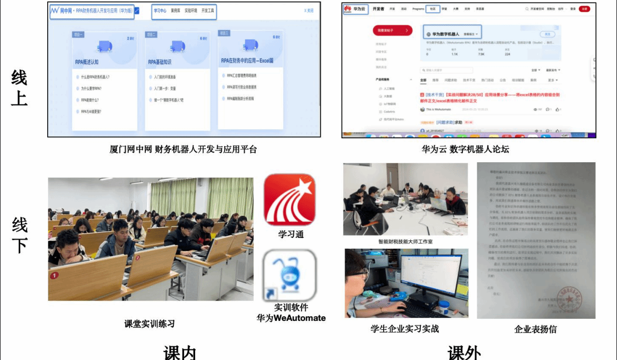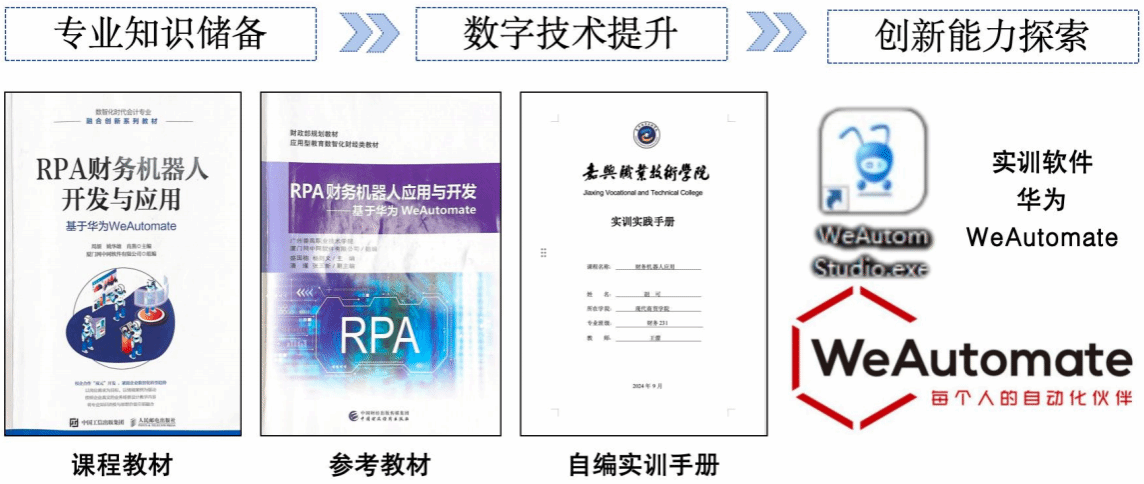 教材作為“三進”工作的基礎(chǔ)和保證。《財務(wù)機器人應(yīng)用》課程歷經(jīng)三年的課程實施,遵循專業(yè)數(shù)字化發(fā)展趨勢,依托“專業(yè)教研室+黨支部”的集體智慧,精心選取由中國人自主研發(fā)的財務(wù)機器人軟件(WeAutomate)、配套教材《RPA 財務(wù)機器人開發(fā)與應(yīng)用:基于華為 WeAutomate》和自編課程實訓手冊。內(nèi)容循序漸進,由淺入深。教材中任務(wù)設(shè)計由簡單到復雜,緊密貼合學生的認知發(fā)展規(guī)律,充分展現(xiàn)了財務(wù)專業(yè)在數(shù)字技能領(lǐng)域的變革與發(fā)展趨勢,凸顯新時代背景下技術(shù)與管理的深度融合。教材中任務(wù)設(shè)計依據(jù)國家“十四五”規(guī)劃和 2035 年遠景目標綱要中關(guān)于提升企業(yè)技術(shù)創(chuàng)新能力、激發(fā)人才創(chuàng)新活力的創(chuàng)新驅(qū)動發(fā)展戰(zhàn)略,培養(yǎng)學生樹立強國意識和創(chuàng)新精神;強調(diào)習近平新時代中國特色社會主義思想對創(chuàng)新驅(qū)動發(fā)展的引領(lǐng)作用。案例資源豐富,還原場景?!敦攧?wù)機器人應(yīng)用》充分挖掘每章教學內(nèi)容蘊含的思政元素,從愛國精神、家國情懷、職業(yè)操守、社會責任感等多維度探索思政案例。教材中,任務(wù)場景引用依法納稅等規(guī)范操作案例,融入相關(guān)法律法規(guī),引導學生增強法律意識,具備良好的職業(yè)操守和社會責任感。同時,明確全面推進依法治國和全面深化改革的重要性。在自編實訓手冊中“流程梳理-小組實施-個人展示-任務(wù)評價”的案例解析形式,展現(xiàn)財務(wù)機器人在業(yè)財稅一體化業(yè)務(wù)流程的實際應(yīng)用,有效培養(yǎng)學生的自信心、團隊協(xié)作能力,以及職業(yè)道德和家國情懷等理想信念教育。