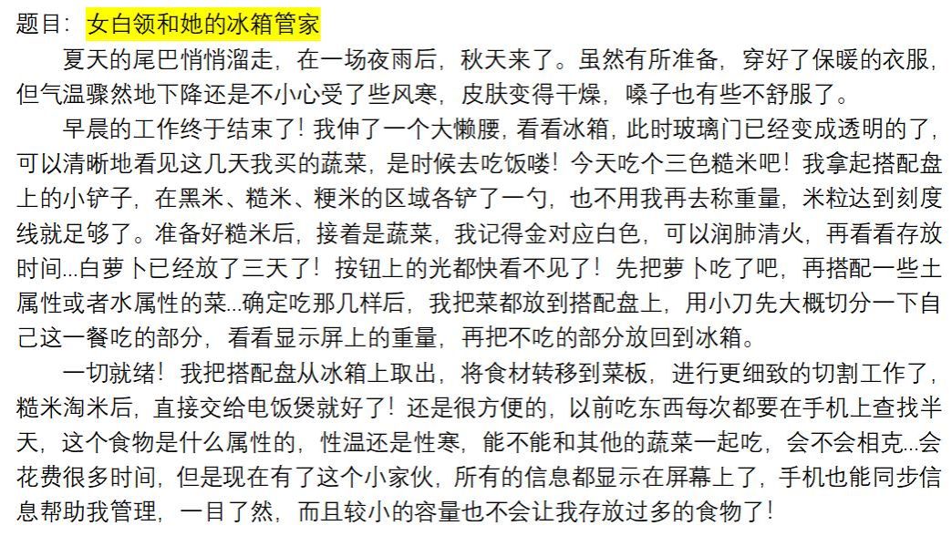在限定的時(shí)間內(nèi),自由發(fā)揮想象,同學(xué)們似乎找回了中學(xué)作文訓(xùn)練的感覺,行云流水,奮筆疾書。規(guī)定的時(shí)間內(nèi)都寫完了,之后安排組內(nèi)交流,要求交換文稿,富有情感地朗讀隊(duì)友的文章,教室里不時(shí)傳出一陣陣歡聲笑語。隨后請(qǐng)各組在這些小文章中,提出有價(jià)值的設(shè)想、用戶體驗(yàn)要素作為方案進(jìn)一步完善的設(shè)計(jì)素材,這或許是課程中最開心的一個(gè)小組訓(xùn)練任務(wù)之一。下面來欣賞下同學(xué)們的文學(xué)創(chuàng)作(見圖9)。