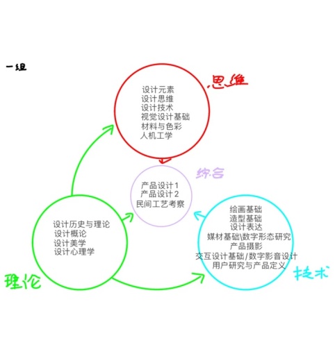 第一階段的課程安排主要是各方面的準(zhǔn)備工作,包括介紹課程的總體計(jì)劃和分組。為了讓同學(xué)們更好了解這個(gè)課程的總體定位,安排一項(xiàng)小組課堂快速練習(xí),請(qǐng)他們嘗試用簡(jiǎn)單可視化的方式,做一張已學(xué)的設(shè)計(jì)學(xué)內(nèi)容的關(guān)系圖,并分享討論(見圖1)。