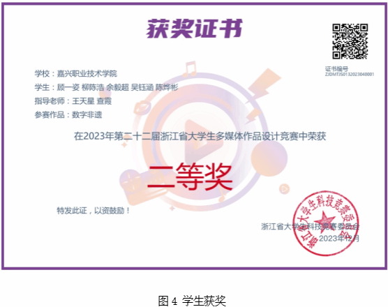 (3)積累課程創(chuàng)新實(shí)踐案例,基于人機(jī)交互的微課作品獲得浙江省大學(xué)生多媒體作品設(shè)計(jì)競賽二等獎等成績;
