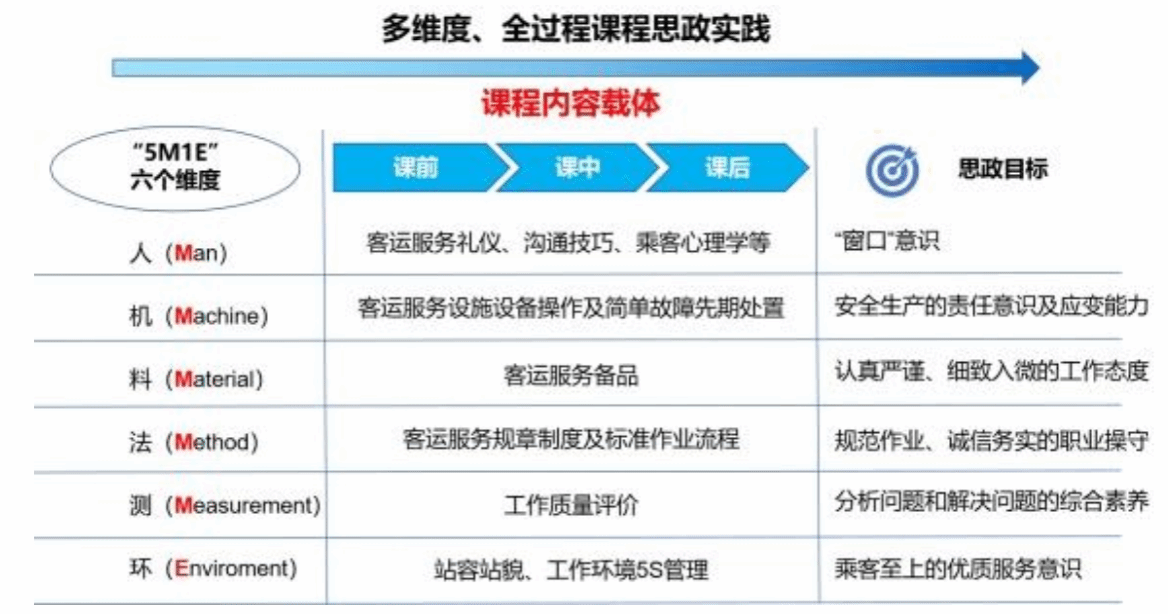 【校級(jí)】“5M1E”課程思政實(shí)施模式探究——以《城市軌道交通客運(yùn)服務(wù)》課程為例