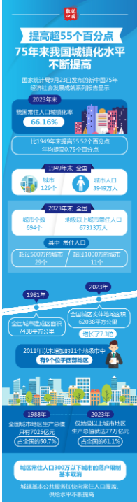 數(shù)說中國丨75年來我國城鎮(zhèn)化水平不斷提高
