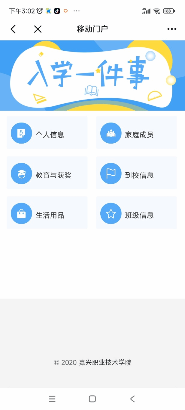 迎新系统是新生入学前必须要完成的一些信息采集类项目(图8):