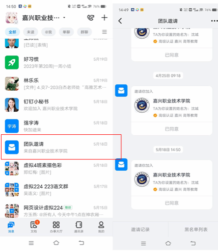 三、 同意团队邀请